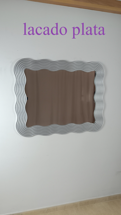 Añade un toque artístico a tu espacio con este espejo de diseño vanguardista. Su marco, meticulosamente trabajado en DM hidrófugo, simula la curvatura de las ondas, creando una pieza visualmente dinámica. Disponible en un elegante lacado plata para un ambiente fresco y actual, o en un sutil lacado champán para un estilo más distinguido, este espejo es perfecto para dar amplitud y personalidad a salones, dormitorios o recibidores.